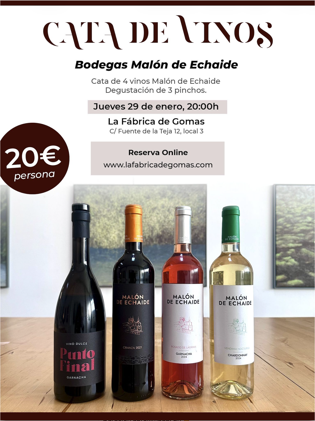 Ven y disfruta de una cata exclusiva en La Fábrica de Gomas con las Bodegas Malón de Echaide