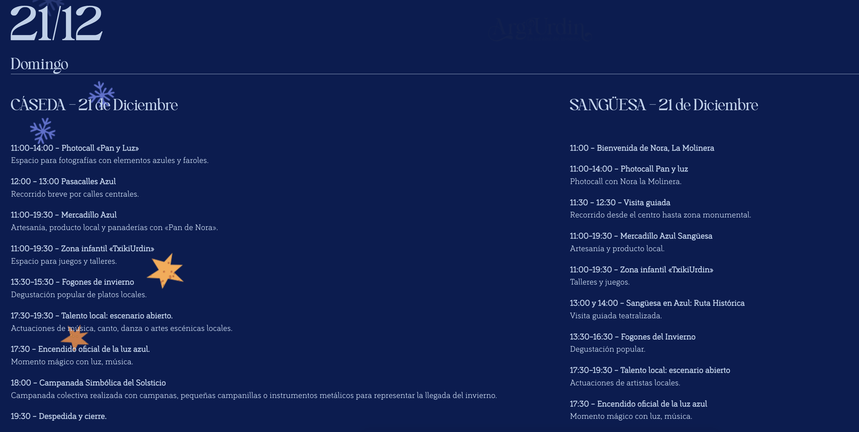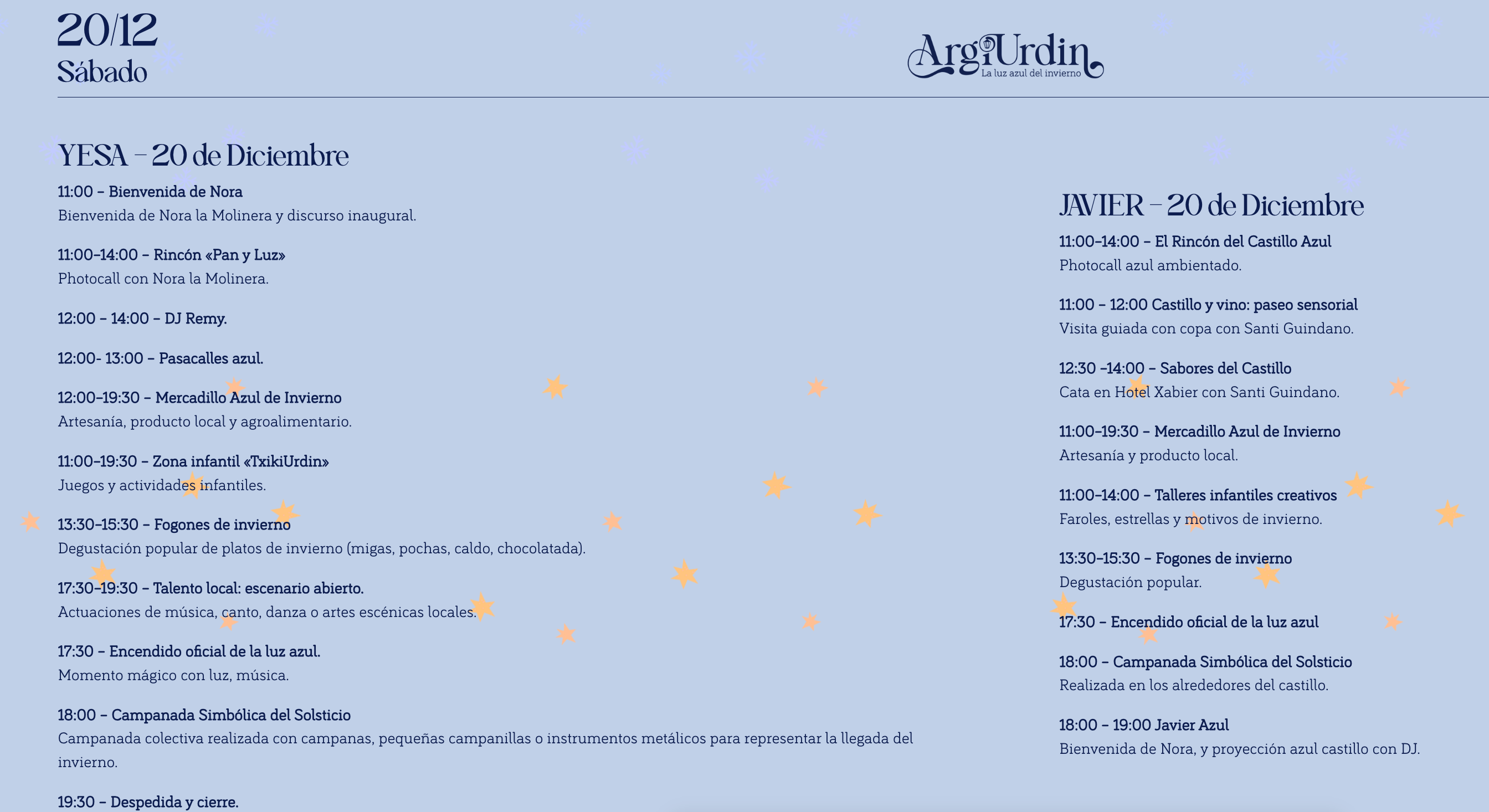 Durante los días 20 y 21 de diciembre, los cuatro pueblos del río Aragón celebrarán una programación conjunta que combinará luz, tradición, gastronomía, artesanía y actividades familiares, con la intención de consolidarse como una cita destacada de la temporada. ArgiUrdin nace, además, con la vocación de reforzar la identidad compartida del territorio y de poner en valor el papel del río Aragón como elemento que conecta a estas localidades.