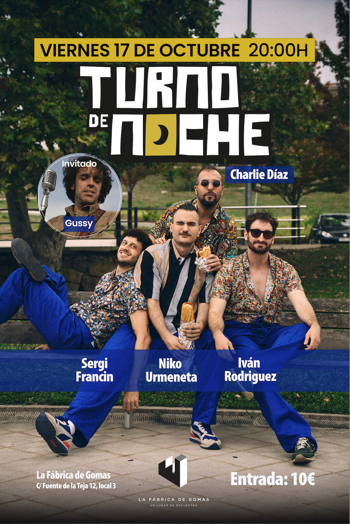 Turno de Noche es un espectáculo de comedia, que mezcla monólogos al puro estilo stand up comedy y un 'Late night show' bastante gamberro